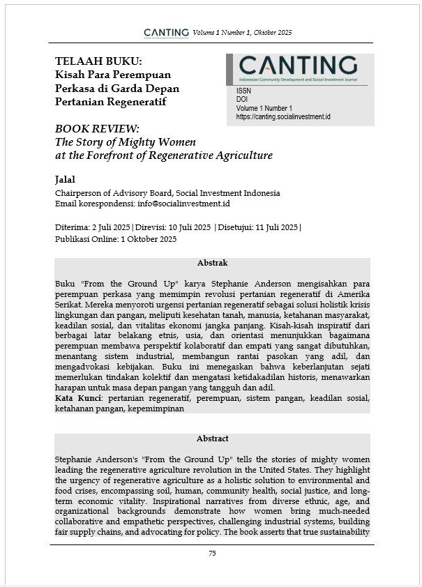Buku "From the Ground Up" karya Stephanie Anderson mengisahkan para perempuan perkasa yang memimpin revolusi pertanian regeneratif di Amerika Serikat. Mereka menyoroti urgensi pertanian regeneratif sebagai solusi holistik krisis lingkungan dan pangan, meliputi kesehatan tanah, manusia, ketahanan masyarakat, keadilan sosial, dan vitalitas ekonomi jangka panjang. Kisah-kisah inspiratif dari berbagai latar belakang etnis, usia, dan orientasi menunjukkan bagaimana perempuan membawa perspektif kolaboratif dan empati yang sangat dibutuhkan, menantang sistem industrial, membangun rantai pasokan yang adil, dan mengadvokasi kebijakan. Buku ini menegaskan bahwa keberlanjutan sejati memerlukan tindakan kolektif dan mengatasi ketidakadilan historis, menawarkan harapan untuk masa depan pangan yang tangguh dan adil.